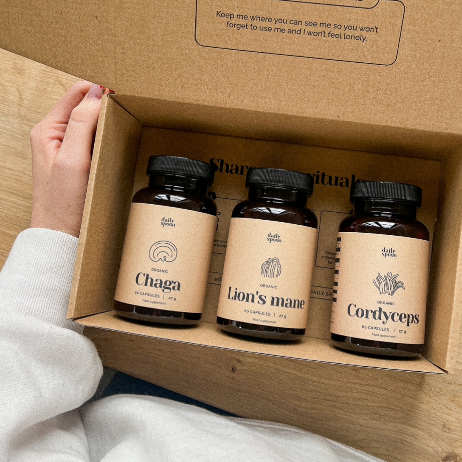 Zalecamy stosowanie jednego lub dwóch produktów jednocześnie, po dwie kapsułki każdego dziennie. Na przykład, zacznij od Lion's mane i Chaga. Po miesiącu stosowania możesz zacząć używać Ashwagandhy.
